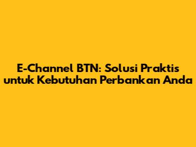 E-Channel BTN: Panduan Lengkap Untuk Kemudahan Transaksi