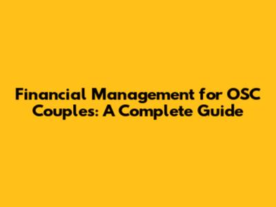 Financial Management For OSC Couples: A Complete Guide