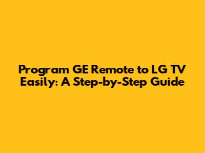 Program GE Remote To LG TV Easily