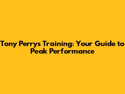 Tony Perry's Training: Your Guide To Peak Performance