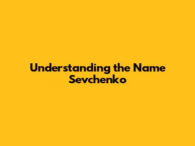 Understanding The Name Sevchenko