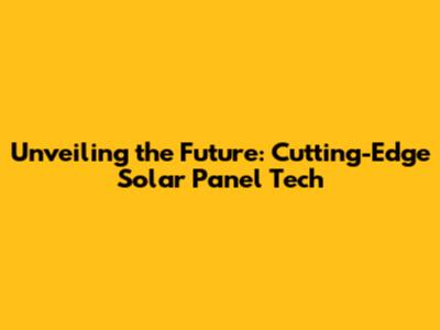 Unveiling The Future: Cutting-Edge Solar Panel Tech