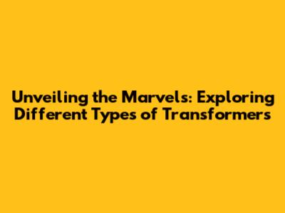 Unveiling The Marvels: Exploring Different Types Of Transformers