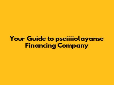 Your Guide To Pseiiiiolayanse Financing Company